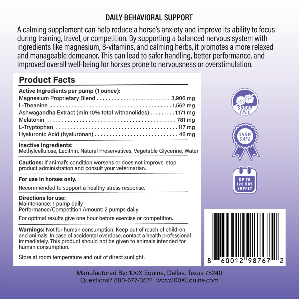 Max Calm is far superior to the others on the market. While many competing products rely on questionable ingredients or banned substances, this one is backed by scientific research on how each ingredient helps mood, focus and temperament. My horse remains calm and focused but alert. It truly makes a difference in stressful situations, giving me peace of mind knowing I’m using the best available product for my horse’s well-being.